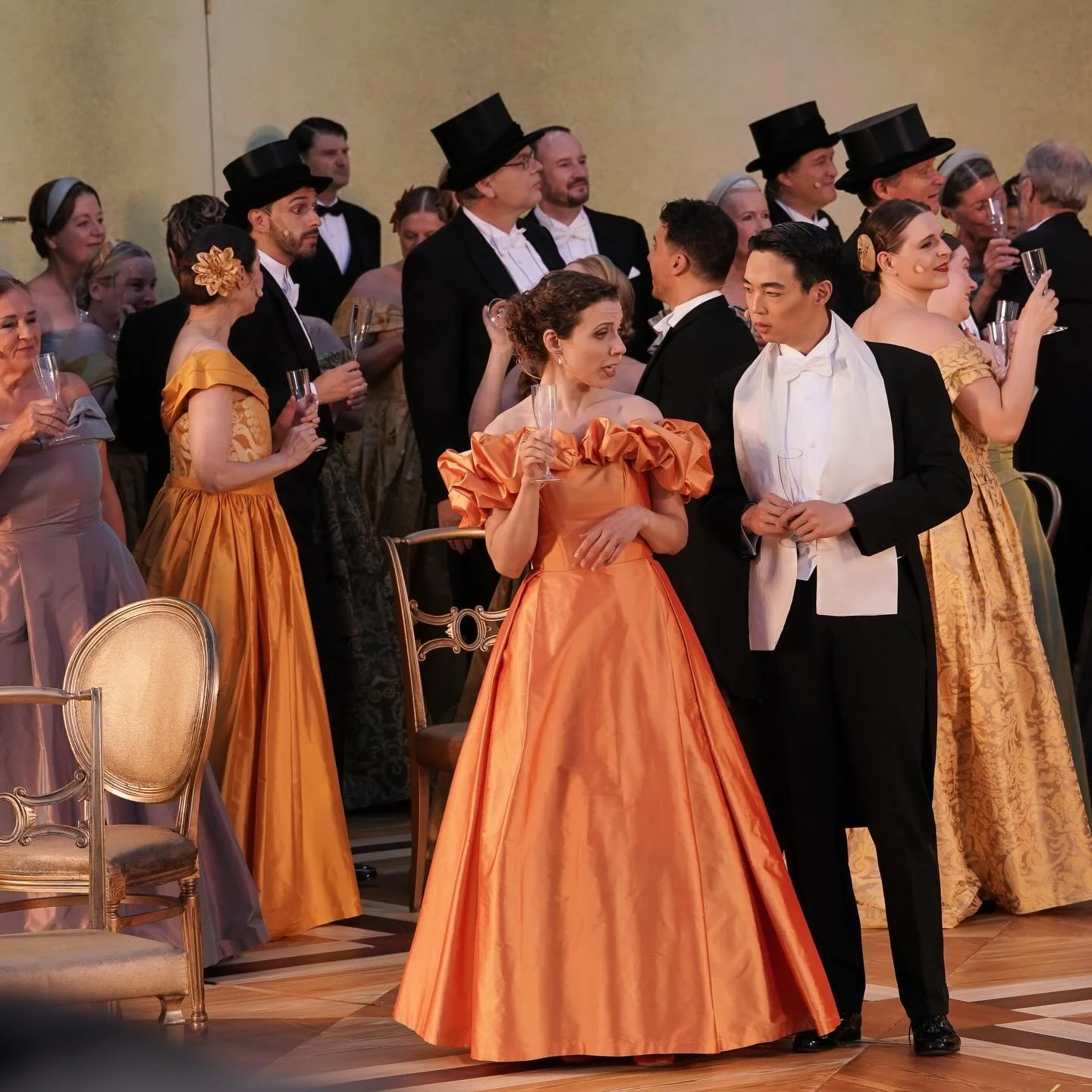 As Ensemble in Manon with dell'Arte Opera Ensemble, August 2016. Mark Baker, photographer. Victoria Crutchfield, stage director; Chris Fecteau, conductor; Nina Bova, costume designer; Courtney Nelson, scenic designer; Mary Ellen Stebbins, lighting designer.